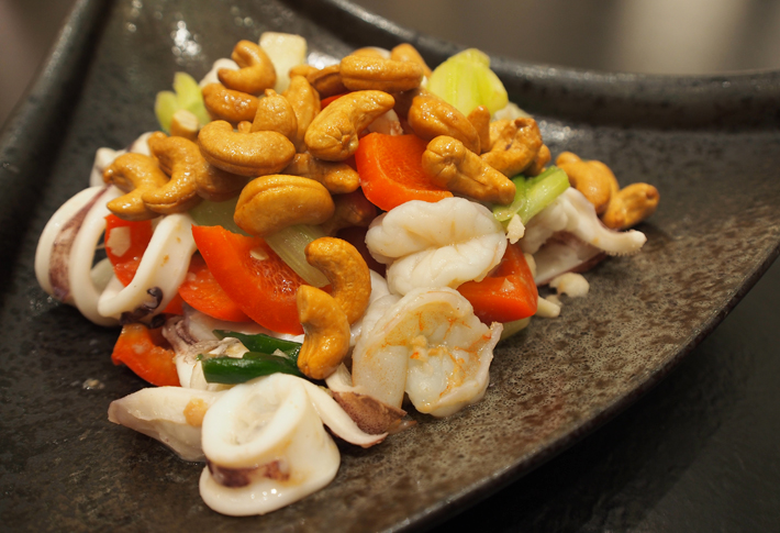 • 材料/蝦仁300g、透抽150g、腰果2兩、紅甜椒1個、西洋芹2支、蔥1根、蒜3顆、薑末少許。