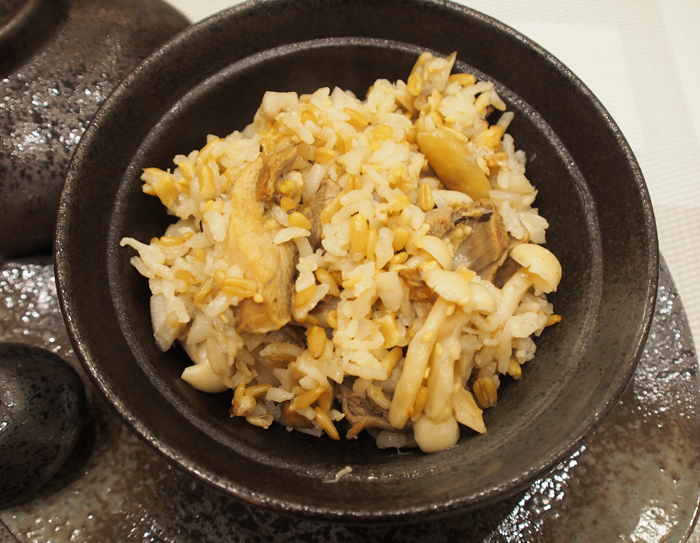 • 材料/燕麥1/2杯、白米1/2杯、去骨雞腿肉1支、蓮藕3節、香菇6朵、美白菇1包、蒜頭2顆、高湯1.1杯。