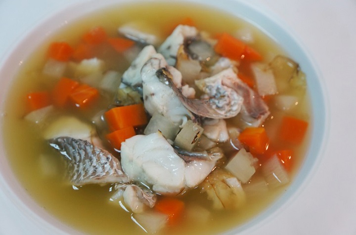 1)白蘿蔔切丁,紅蘿蔔切丁,鱸魚切成片